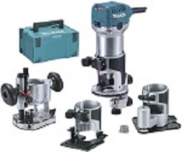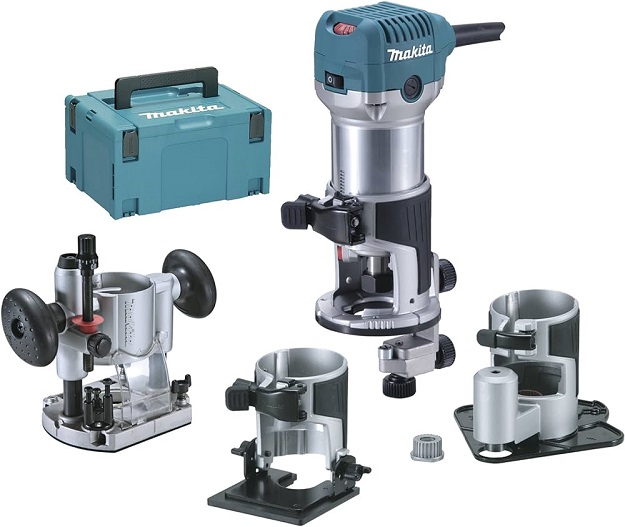 Makita RT0700CX3J Makpac Effleureuse/défonceuse multifonctions + accessoires + coffret 8 mm 710W.